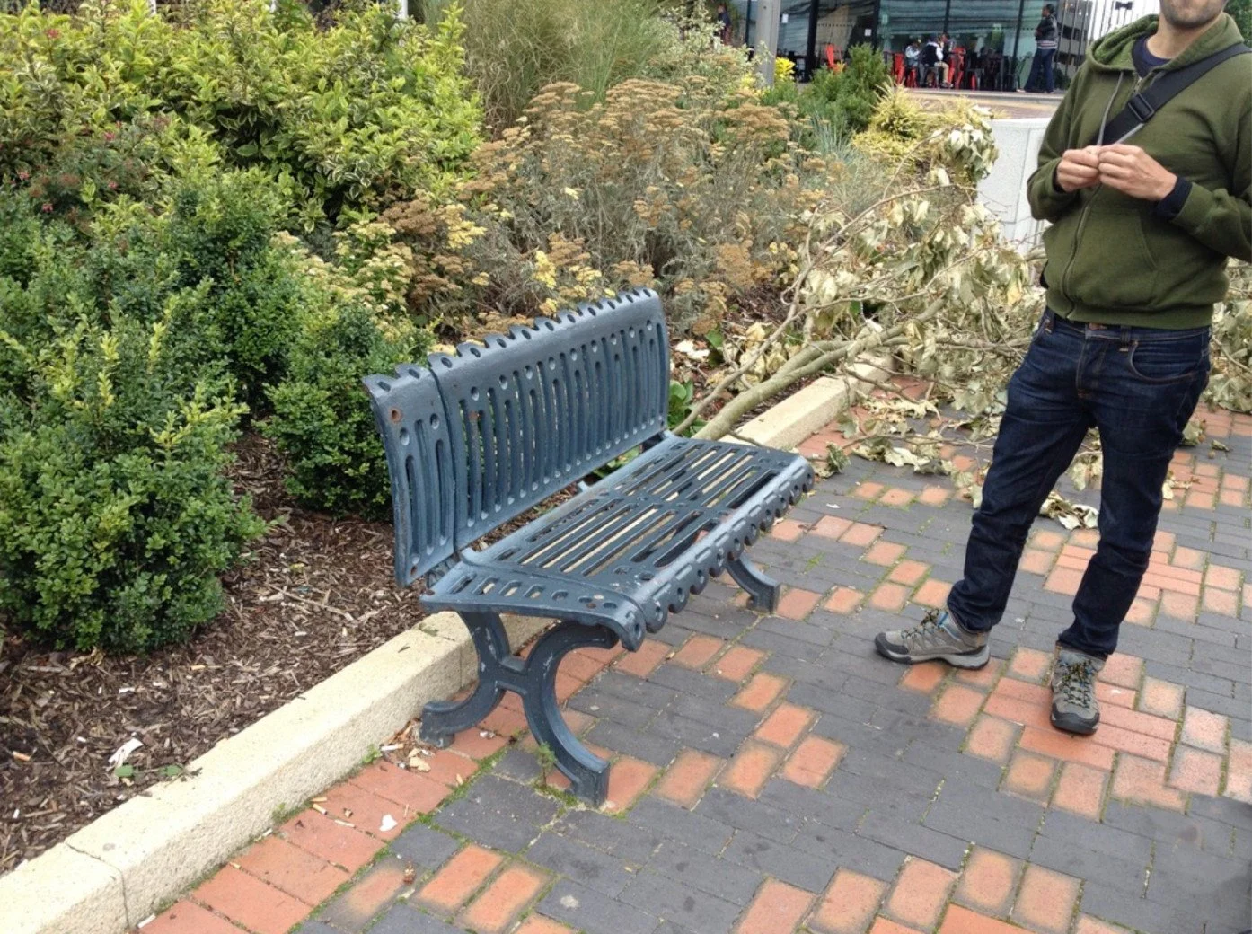 We pause at a ventilation shaft to the Anchor Exchange and then we’re back in Centenary Square. The space outside the library is, by design, a wild flower meadow. I’m always on the lookout for seating in public squares in the city: seated people observe their environment and talk to each other. Public seating is a rarity in city centre Birmingham (keep shopping, is the general idea). It’s difficult to see from here but the new public space seems to have a deck chair… albeit made out of flowers.